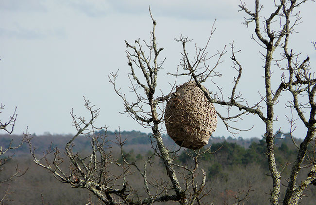 vejami v drevesih ali na drugih visokih strukturah. Njihova gnezda v premeru merijo do 50 cm in